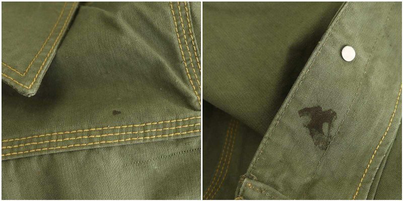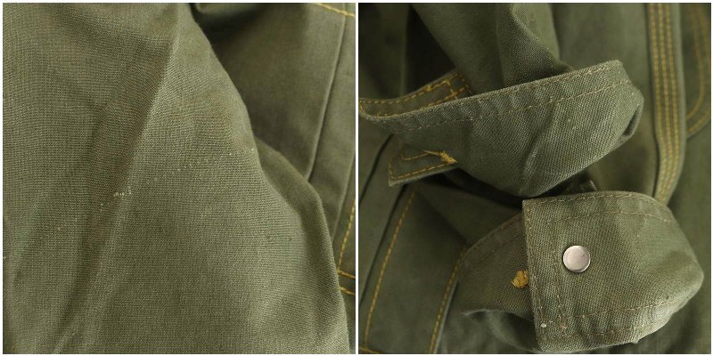 【状態】全体的に複数のキズ、左胸あたりに小さな黒い汚れ、前身頃の裾裏あたりに焦げ茶色の汚れがございます。 ※全体的に中古品としての使用感と上記のようなダメージがありますが、通常使用には支障のない商品です。掲載写真や記載内容をご確認いただき、ご理解の上ご購入ください。