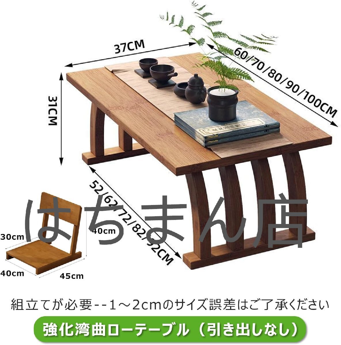 【ローテーブルセレクション】カラー:木調カラー、ブラウン。 サイズ:60/70/80/90/100cm。 オプションの引き出し付きバージョン。 テーブル幅:37cm。 テーブルの高さ:31cm。 椅子のサイズ:40×45×40cm。 パッケージ内容: テーブル1台+椅子2脚。店舗をご確認ください:はちまん店、他の同デザインは全て海賊版でございます、品質は保証されていません、慎重に購入してください。