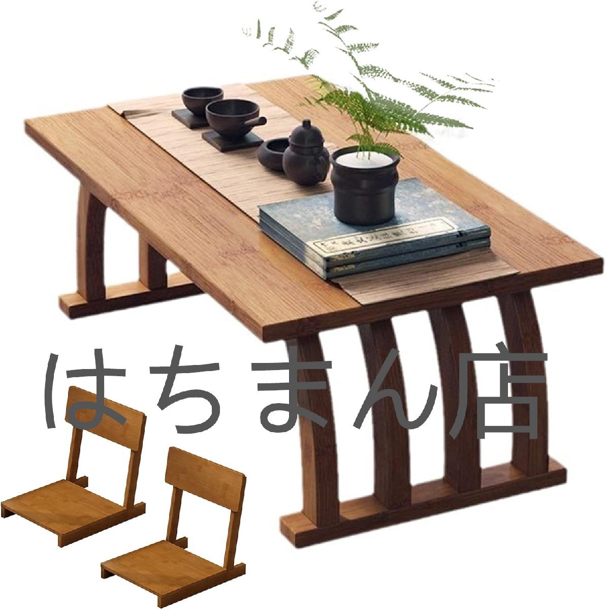 ローテーブル 椅子2脚付き 竹製 アンティークティーテーブル 和風 センターテーブル 茶室 畳用 み立て簡単 90cm 引き出しなし