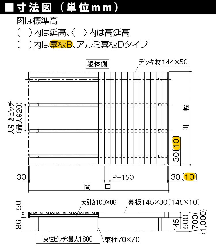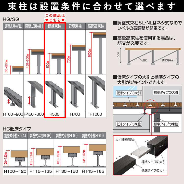 【 調整式柱仕様(地面からデッキ上までの高さ45~60cm調整可能) サイズ一覧はこちら 】
