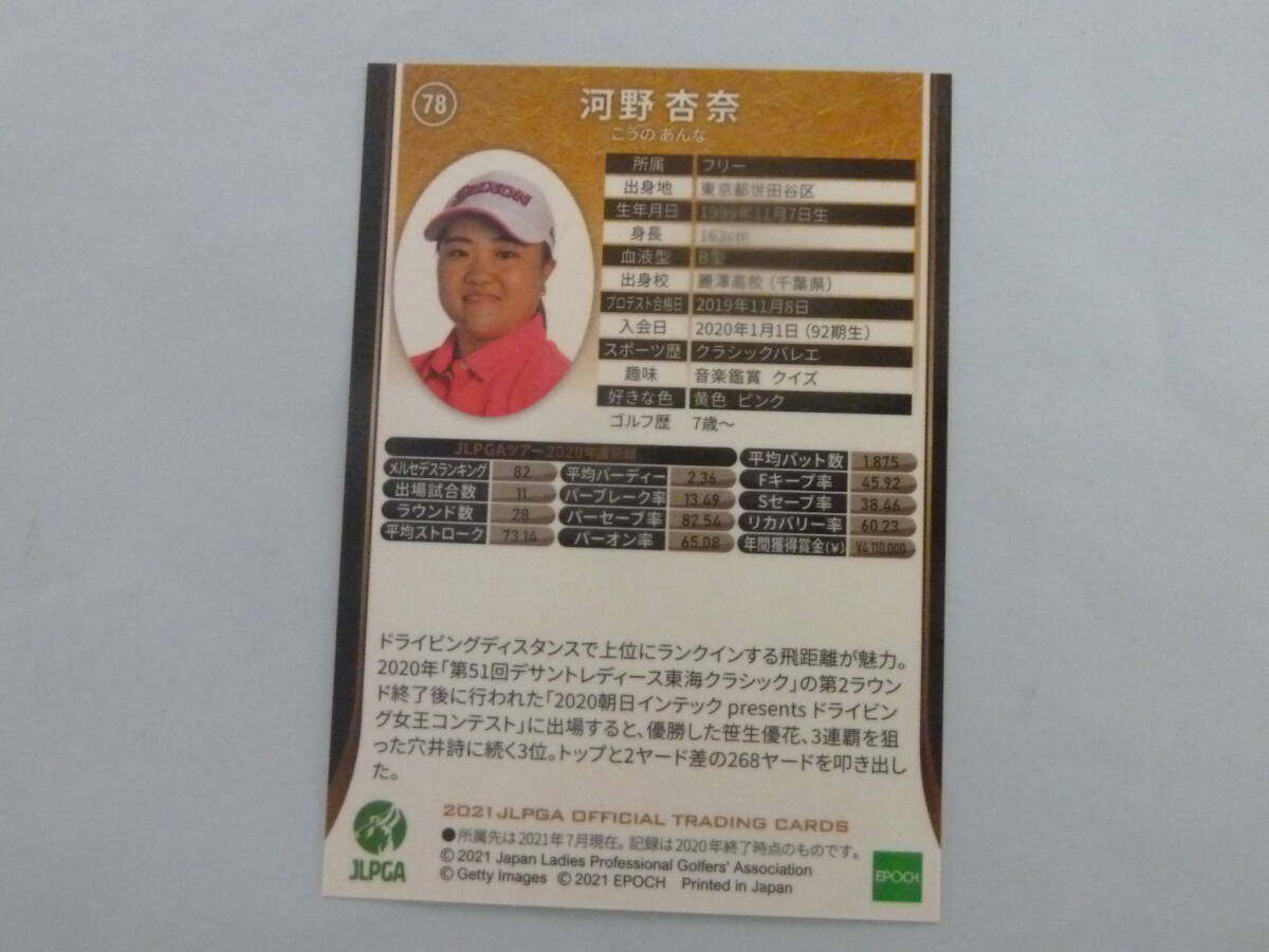 女子プロゴルフ 河野杏奈プロ 直筆サイン入り2021 JLPGAオフィシャルトレーディングカード 激レア JLPGA ラスト1品!