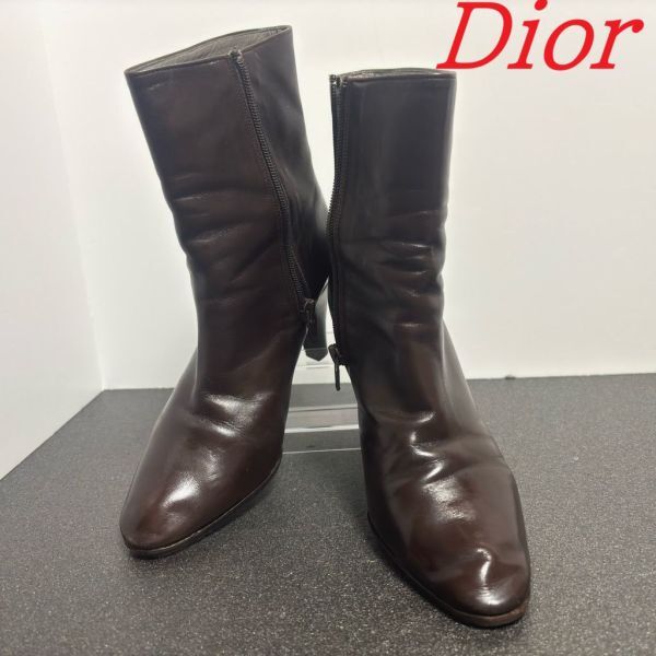 Christian Dior ブーツ 23.5cm ブラウン ファスナー クリスチャン ディオール シューズ 靴 ミドルブーツ ヒール 7cm CD d28
