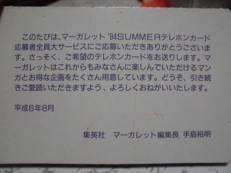 平成6年8月号の全員応募で購入したテレホンカードです 手元に届いてから引き出しに入れていました 未使用品の為、使用確認はしていません ※店頭など他の所でも販売しているため、無くなり次第削除していますが対応ができない時間帯や定休日もございます。(19時~10時は営業時間外) 売り切れている場合は、ご購入いただきましても先にご購入・ご入札いただいた方を優先いたしますので、お取引キャンセルの手続きをさせて頂きますのでご承知いただき、ご購入くださるようお願いいたします。 ※見えずらいですが状態は画像でご確認ください ※モニターや環境などにより、商品写真と実際の商品の色合いが異なる場合がございます |