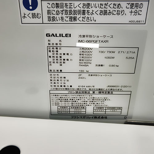 【業界最長1年保証】平型冷凍オープンショーケース フクシマガリレイ(福島工業) IMC-66PGFTAXR 業務用 中古/送料別途見積