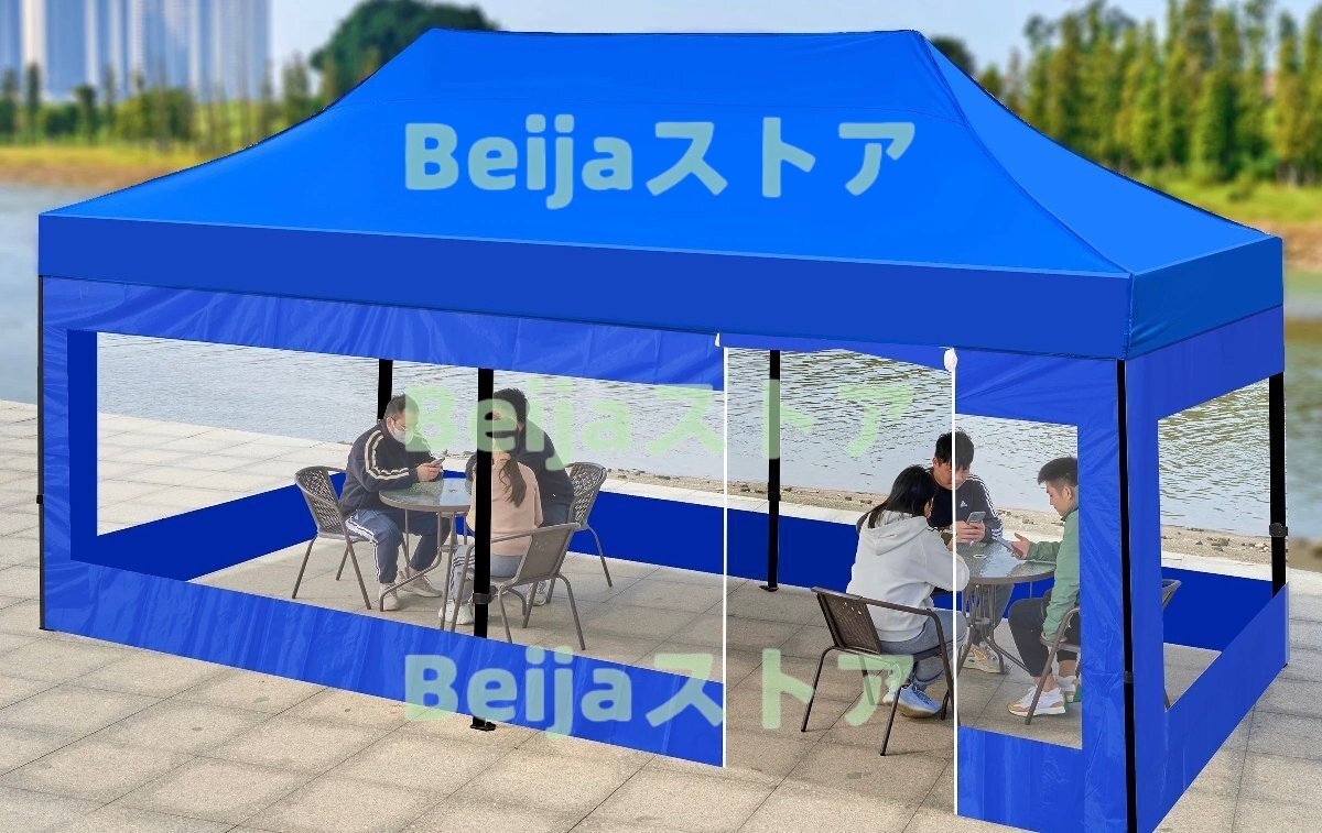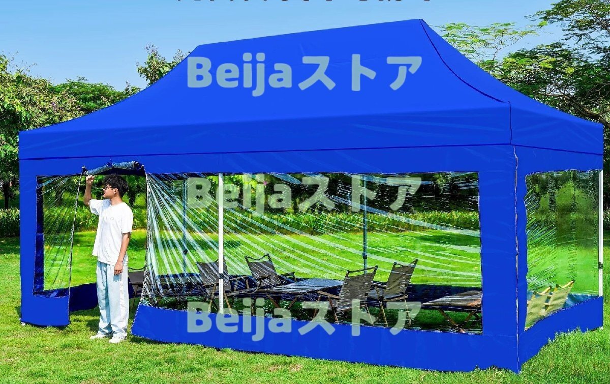 鉄フレーム 4面透明布 テント 屋外 4本足 折りたたみ サンシェード 格納式 キャノピー 4コーナーイベント祭り傘 タープテント B-3*6M