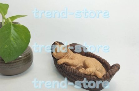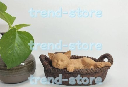 猫 置物 天然木 欅 細密彫刻 木製 動物 工芸品