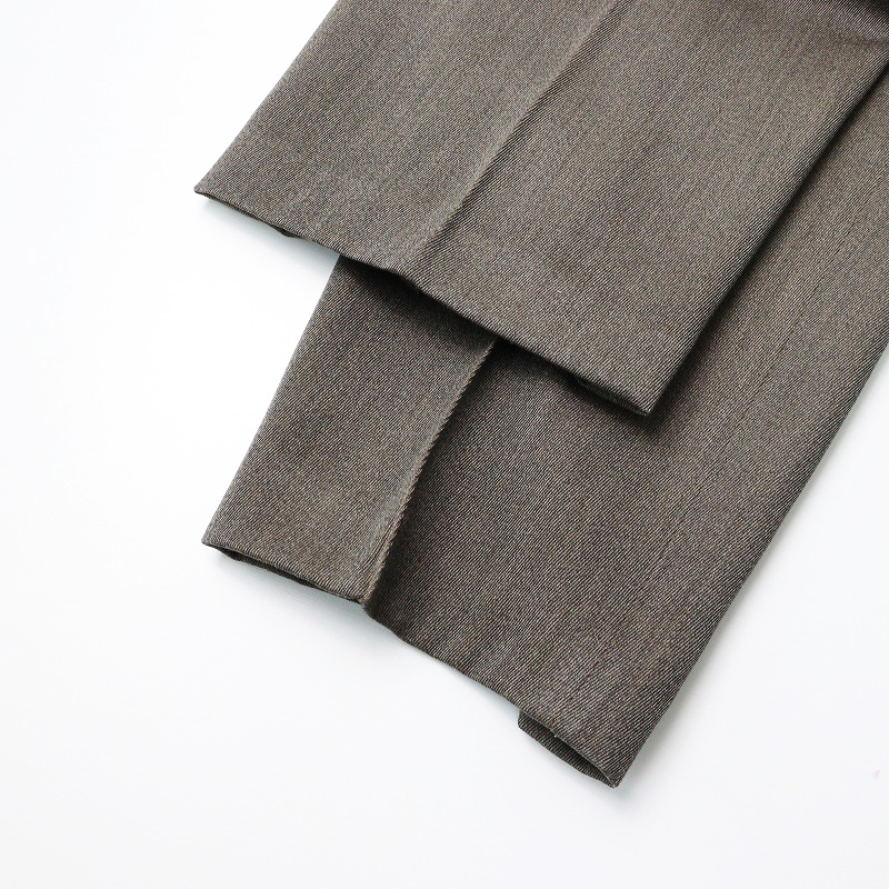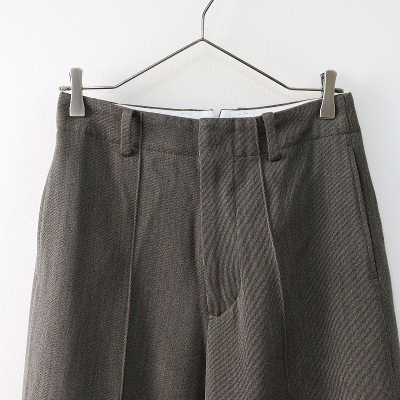 極美品 定価5.3万 2024AW イレーヴ YLEVE WOOL RAYON TWILL TR 1/ブラウン ワイドテーパードパンツ トラウザーズ【2400014221589】
