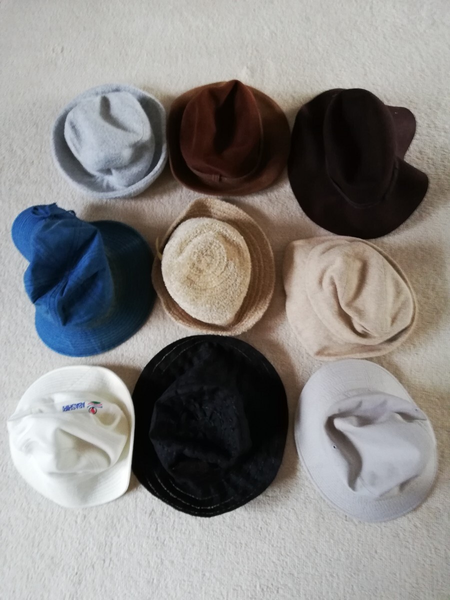 ・タグに記名あるお品物やデニム色の帽子は日焼け跡がございます。