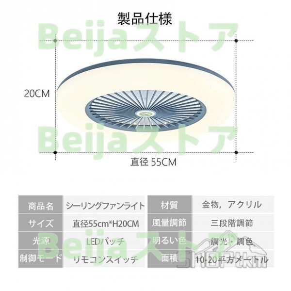 シーリングファン ライト LED シーリングライトサーキュレーター led 薄型 調光 調色 リモコン付き 扇風機 DCモーター 明るさ調節 50*20cm