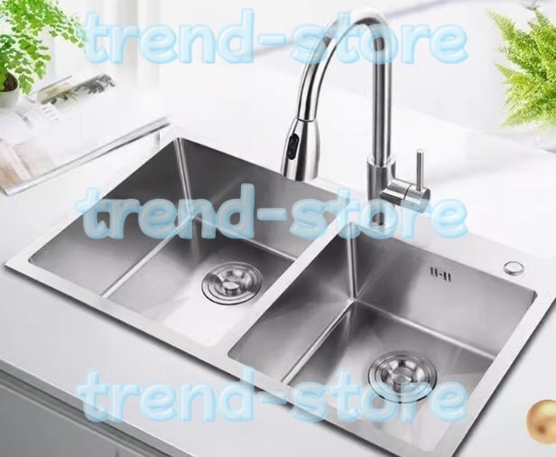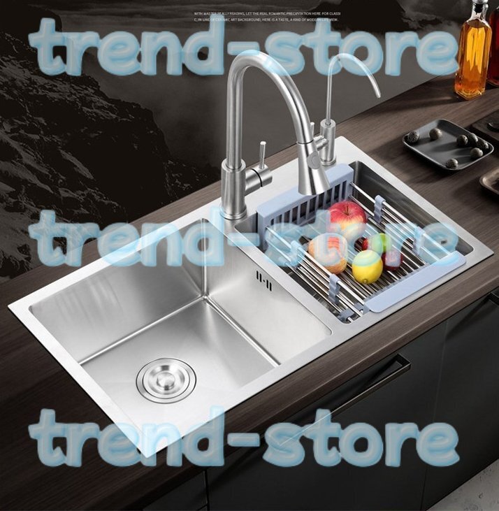 特売!実用品★キッチン用品 ステンレス製流し台 台所 2槽シンク 食器洗いシンク 野菜シンク 肥厚大容量 便利 75*41*22CM