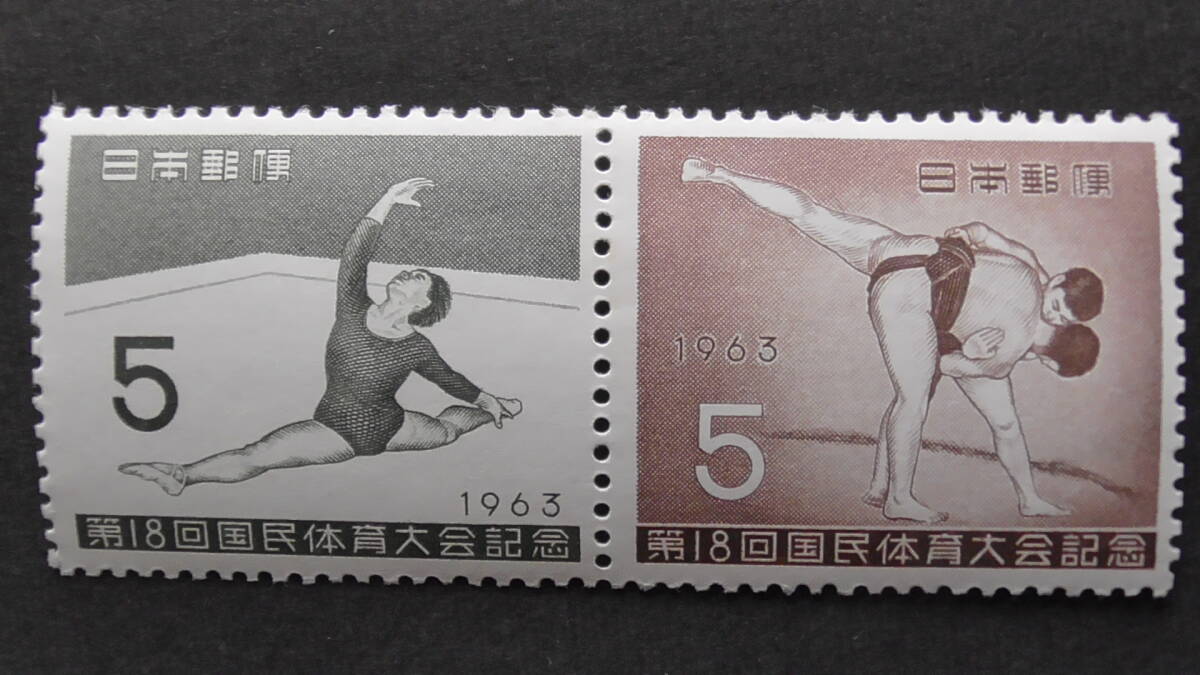 記念切手 第18回国民体育大会『床運動』 5円+『すもう』 5円