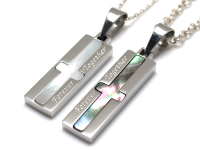 ★人気★お勧め★肌優しい★手入れ不要★金属アレルギー&温泉&海水浴ご使用OK★ステンレスペアネックレス★クロスシェル