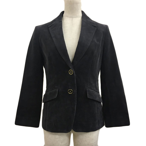 アンクライン ANNE KLEIN ジャケット テーラード シングル シルク カシミヤ混 コーデュロイ 長袖 7 グレー レディース