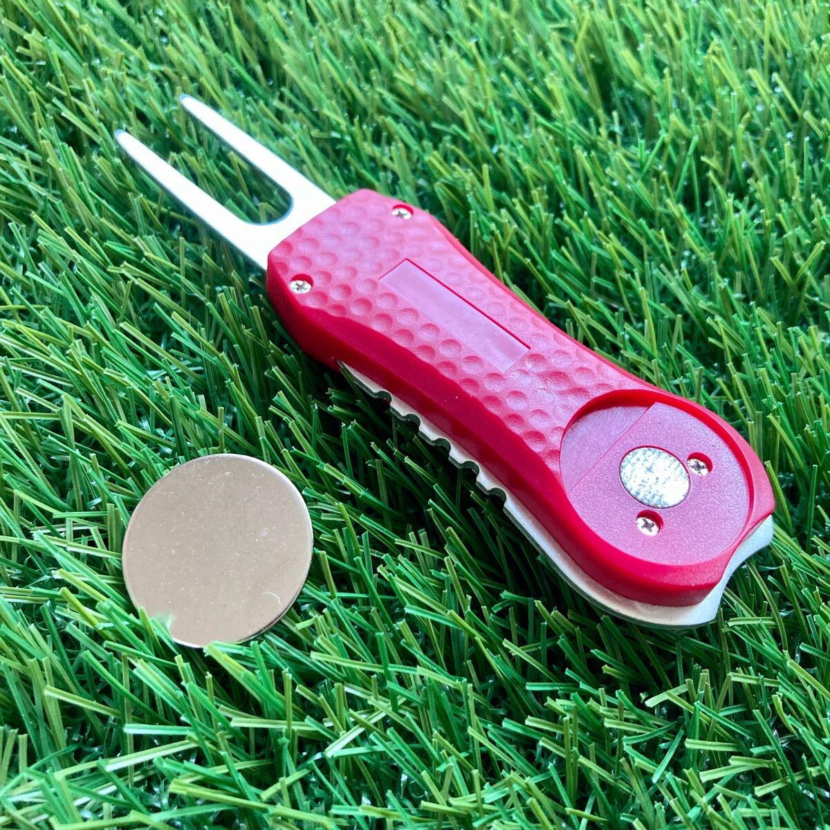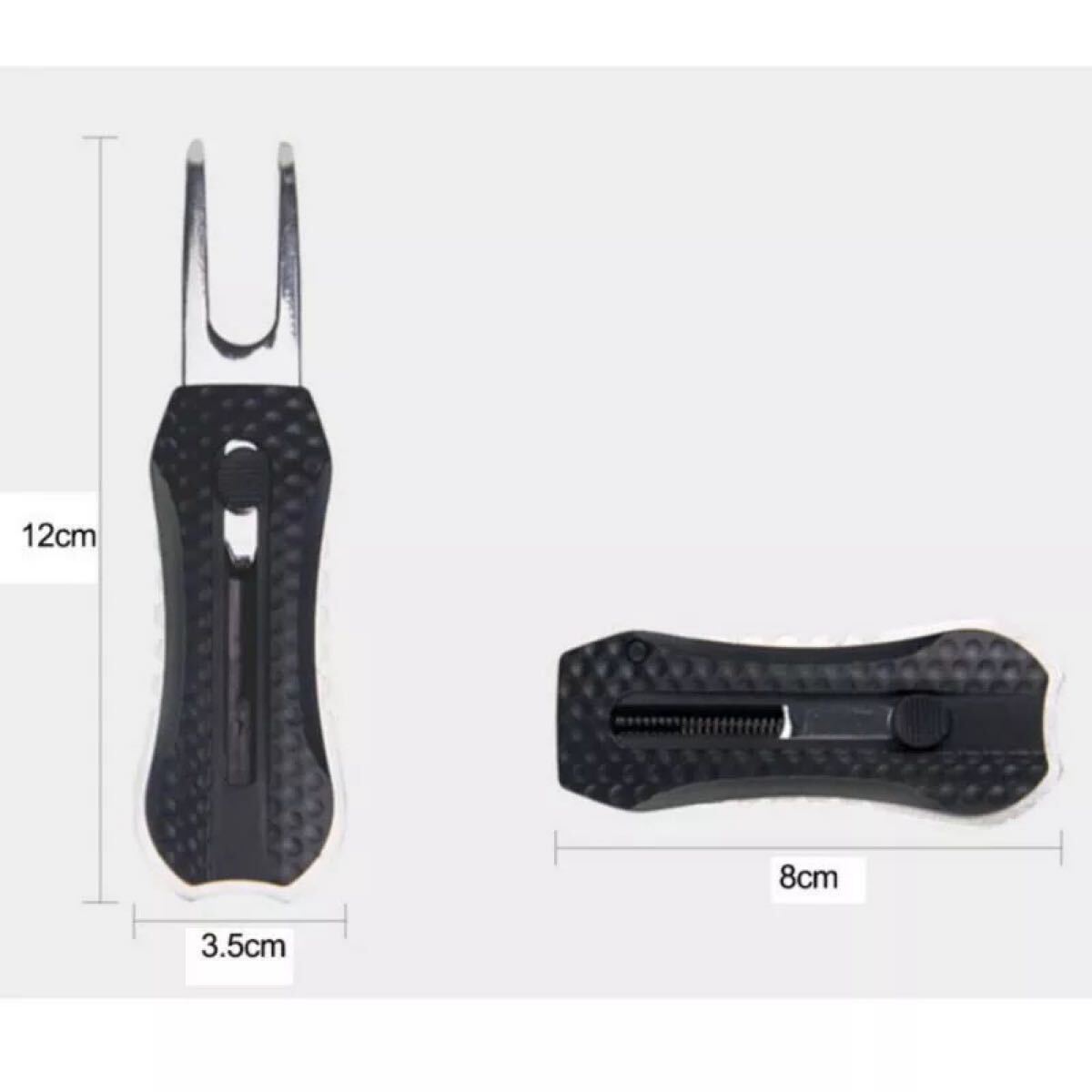 フォーク部分は本体に格納されていますので、使用時は指でスライドさせる事でフォーク部分が出ます。片手で操作ができますので、パターを持ったままグリーンの補修が可能です^_^