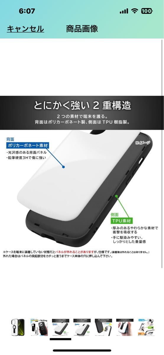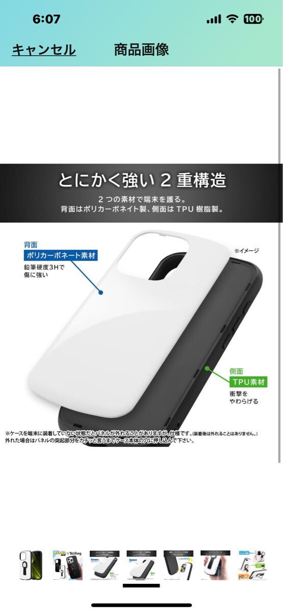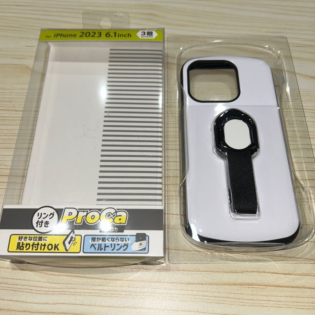 d464 iPhone15 Pro ケース 耐衝撃 2層構造 おまけリング付き スタンド機能 カメラ保護 ストラップホール付き アイフォン 15 プロ /ホワイト