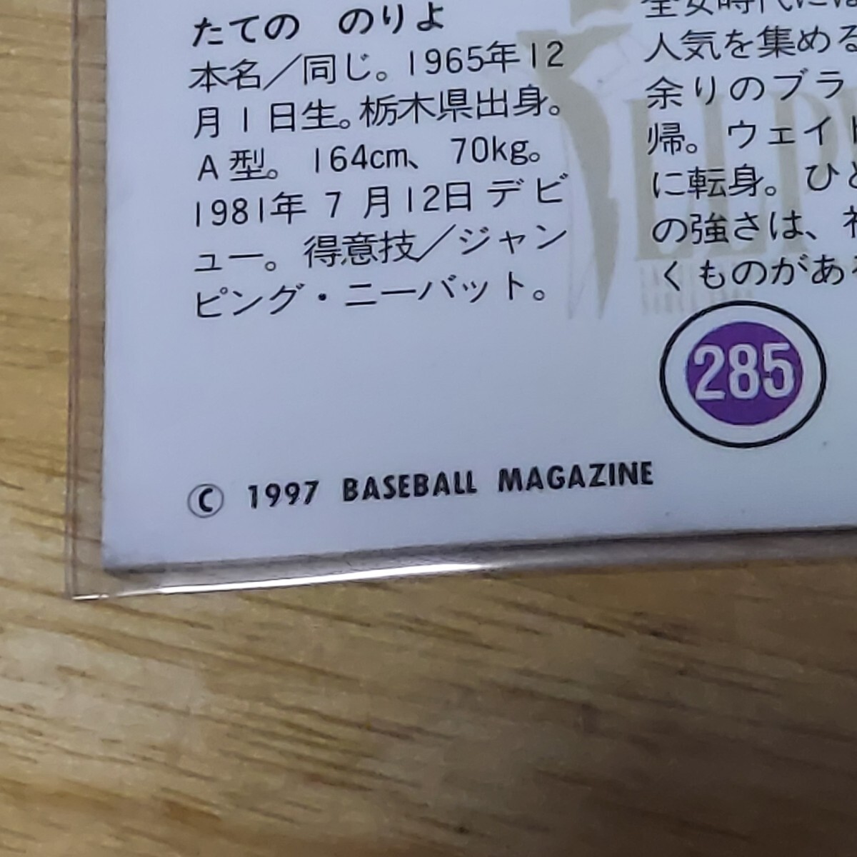 【商品の説明】BBM1997 女子プロレスカード 立野記代