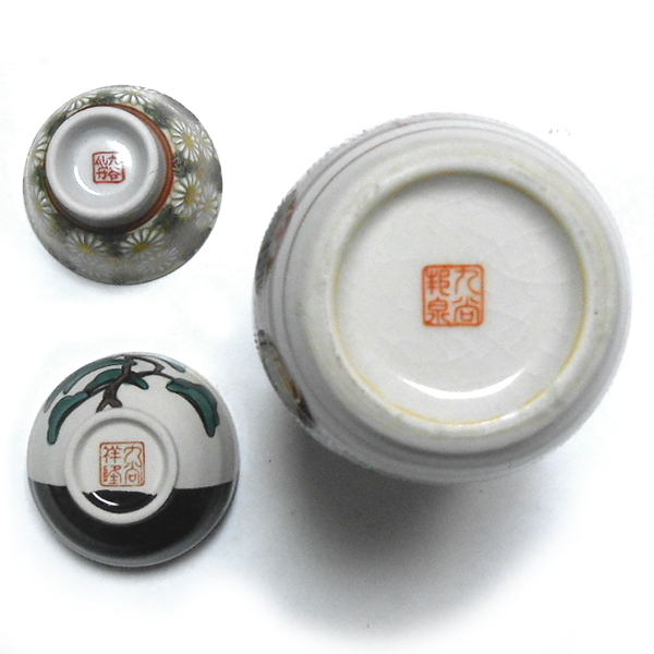 ご覧いただきありがとうございます。当商品は、九谷焼 邦泉 徳利 青粒・花唐草文様 祥隆 仙守 盃 松文様 花詰文様 2種セットです。大きさは、徳利が直径約7.7cm×高さ約13.2cm。底径が約4.6cm。松文様が直径約5.9cm×高さ約2.8cm。底径が約3.0cm。花詰文様が直径約5.8cm×高さ約3.6cm。底径が約2.9cmです。070107R