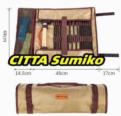 持ち手がついて持ち運びらくらく!キャンプ設営に必要な道具がまとまっているのでサッと取り出せて作業もしやすい