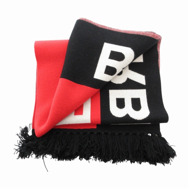未使用品 バーバリー BURBERRY タグ付 KNITTED FOOTBALL SCARF フットボールマフラー ロゴ カシミヤ フリンジ 赤 黒 レッド ブラック