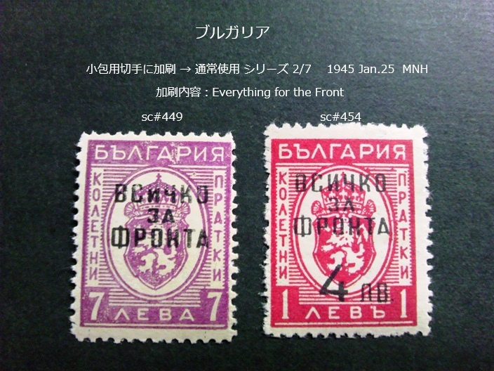 ブルガリア 小包用切手に加刷/通常使用s 1945 sc#449,454