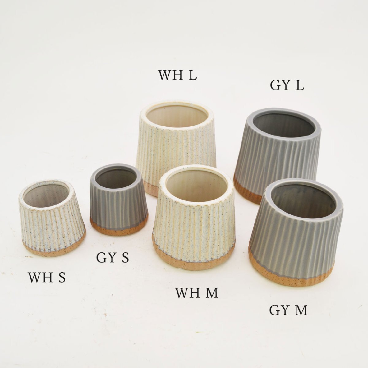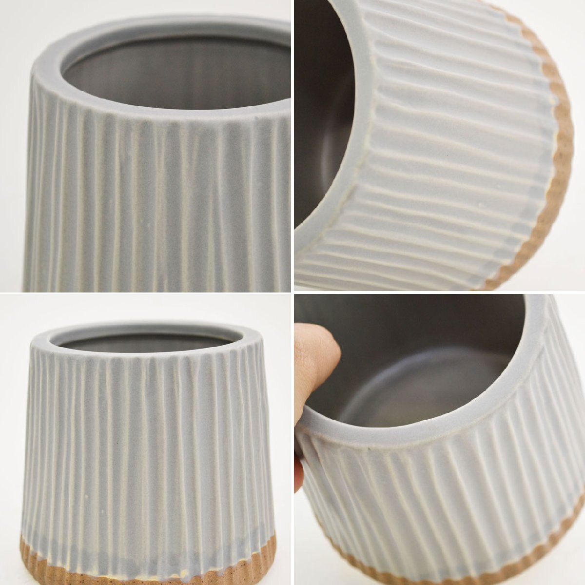 セラミック鉢 カヌレポット グレー L ポタリー 陶器鉢