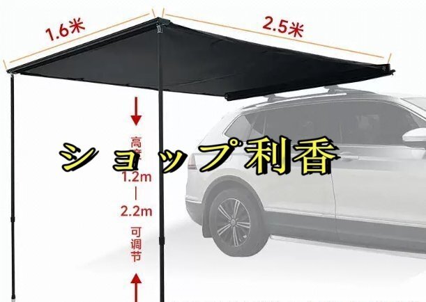 カーオーニング当社のポータブルオーニングはさまざまなサイズがあり、太陽や雨から守る広い日陰を提供します。 アセンブリ全体は頑丈な PVC バッグに梱包されています。 事実上、ルーフラックを備えたすべての車両に取り付けることができます。 水平および垂直サポートポールの両方に回転ロック設計が施されているため、幅と高さの調整が可能になり、柔軟性が向上し、迅速かつ簡単なセットアップと分解が可能になります。仕様:材質: アルミニウム合金フレーム & 420D オックスフォード生地耐水性:5000mm PUコーティング製品の特徴:黒接着剤フルシェーディング、日焼け防止、防水、撥水展開時の全体寸法: 160x250cm/5.2x8.2フィート、200x200cm/6.6x6.6フィート、200x250cm/6.6x8.2フィート、200x300cm/6.6x9.8フィート。調節可能な高さ: 3.9~7.2フィート/120~220cmアルミニウム合金ロッドの太さ: 1.2mm取り付け:車両のルーフトップレールに取り付けて、広い範囲の日よけを提供します。キャンプ、ピクニック、車での旅行、その他のアウトドアアクティビティに最適です。パッケージ内容1×カーサイドオーニング2×L型取り付けブラケット2×I型取り付けブラケット2×ロープ4×ボルトセット4×ナットセット1×レンチ1×キャリーバッグ