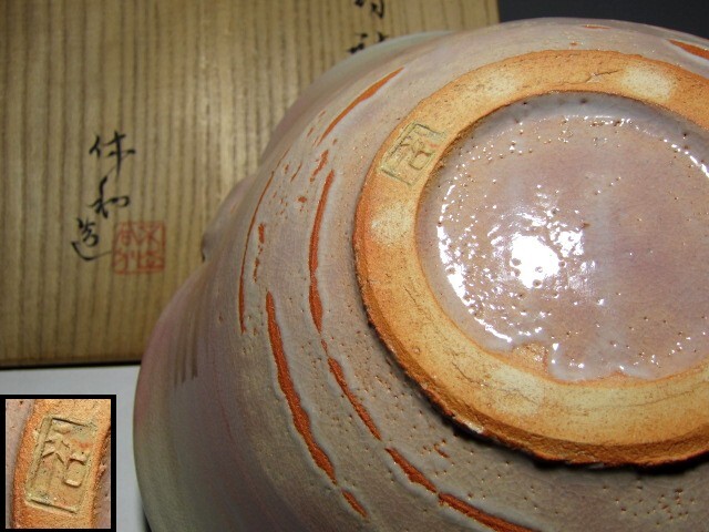 人間国宝 十代 三輪休雪(休和)造、萩手付き鉢です。