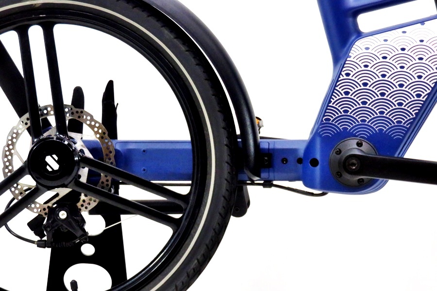 折りたたみ時に後付けのバスケットがフレーム、パーツに接触します。折りたたんでも自立はしません。
