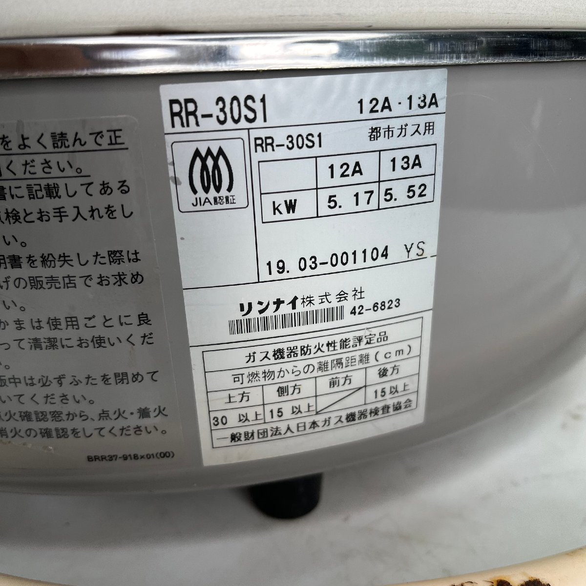 √OG√ リンナイ ガス炊飯器 RR-30S1 2019年式 中古品 W492×D423×H426 都市ガス用 3升炊き 6L √Z-250108