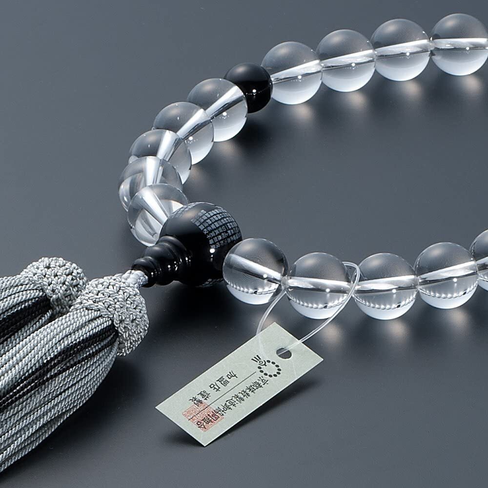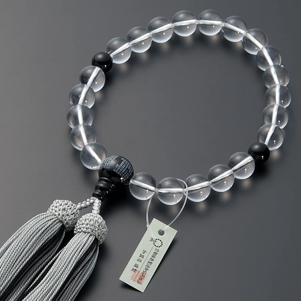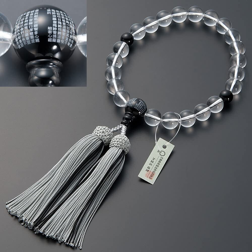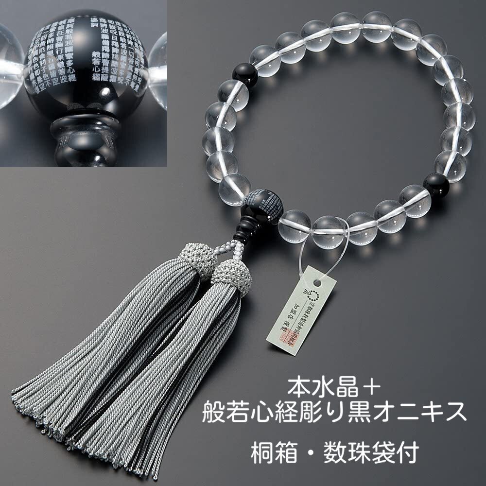 京念珠 男性用 数珠 本水晶(22玉) 般若心経彫り黒オニキス 2 正絹房 数珠袋付 略式数珠