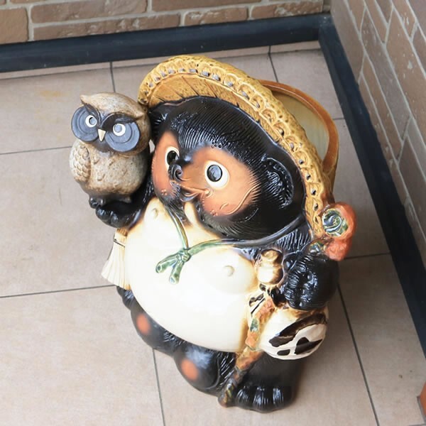 | 商品名 | 信楽焼 17号ふくろう持ち狸傘立て |