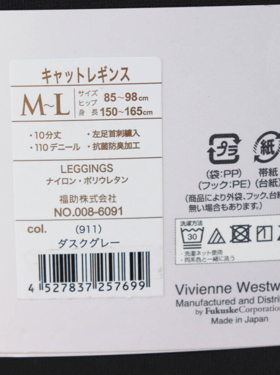 | 新品未開封【Vivienne Westwood ヴィヴィアンウエストウッド】110デニール 10分丈 キャット刺繍 レギンス 濃灰 M-L v6266 |