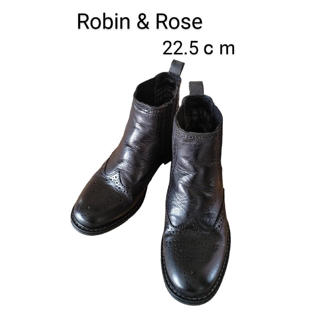 美品!Robin & Rose ロビンローズ 黒革ウィングチップサイドゴアブーツ 22,5~23㎝