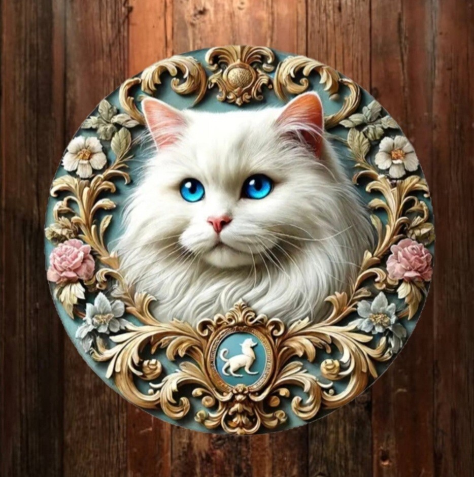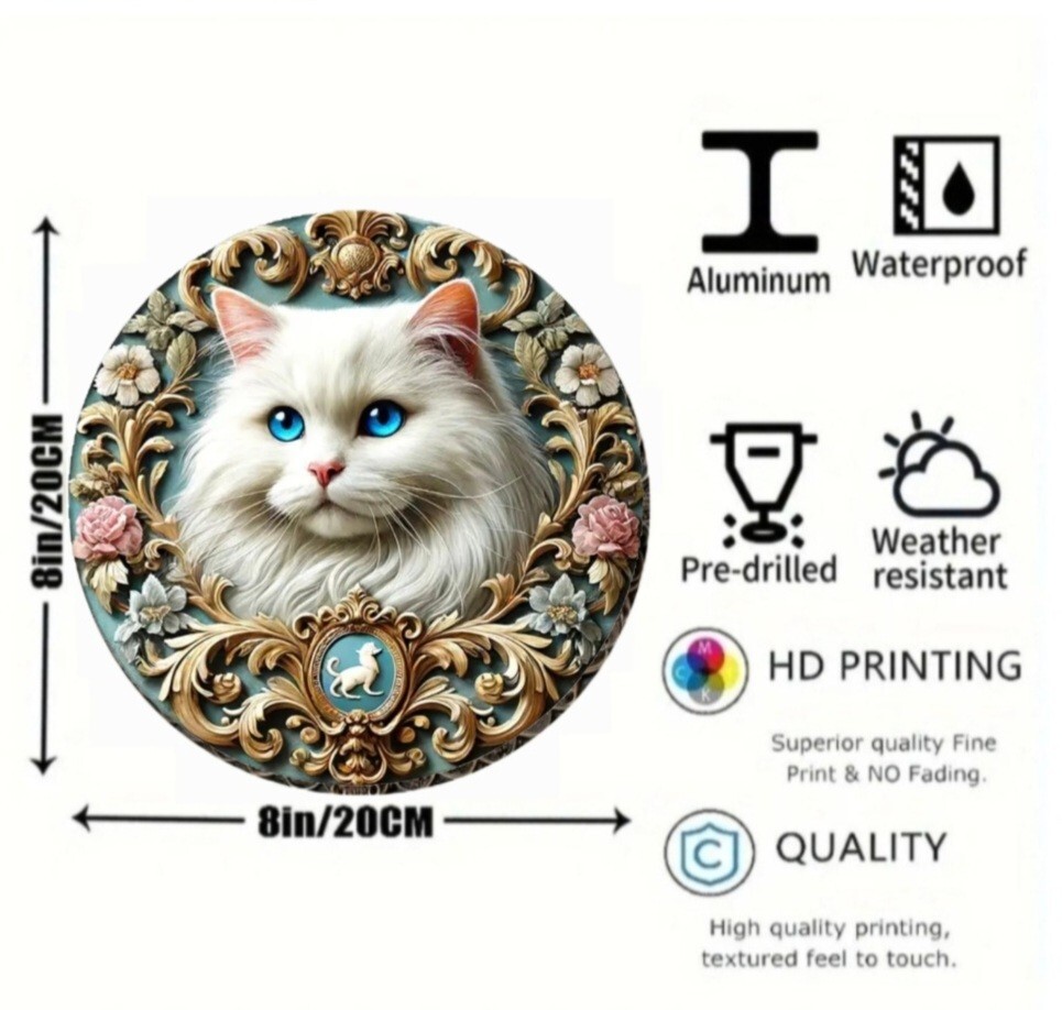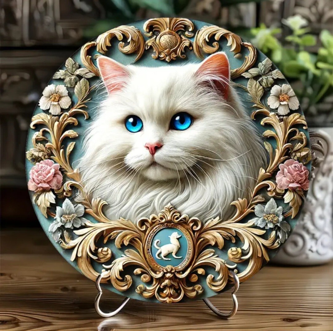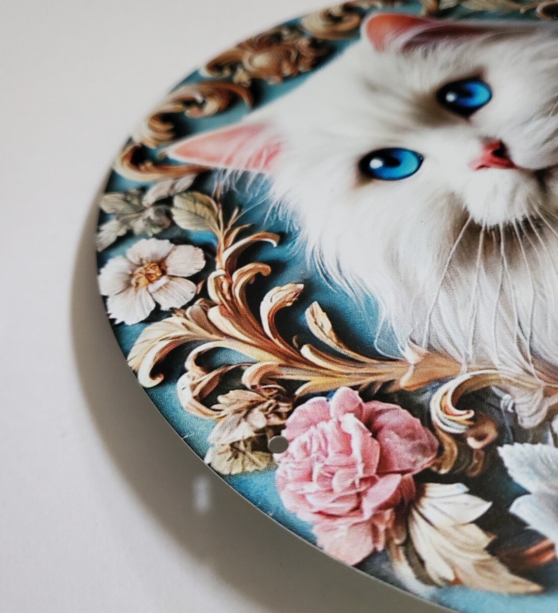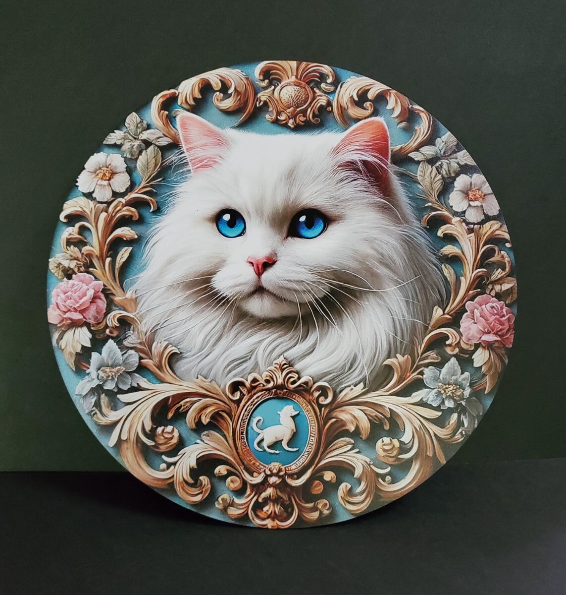 アルミニウムのメタルボードに3Dのプリント技術で描かれた猫のメタルアートです。
