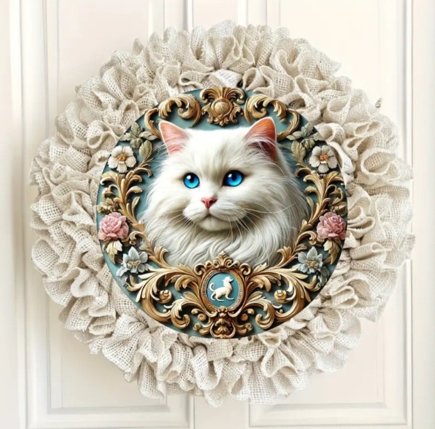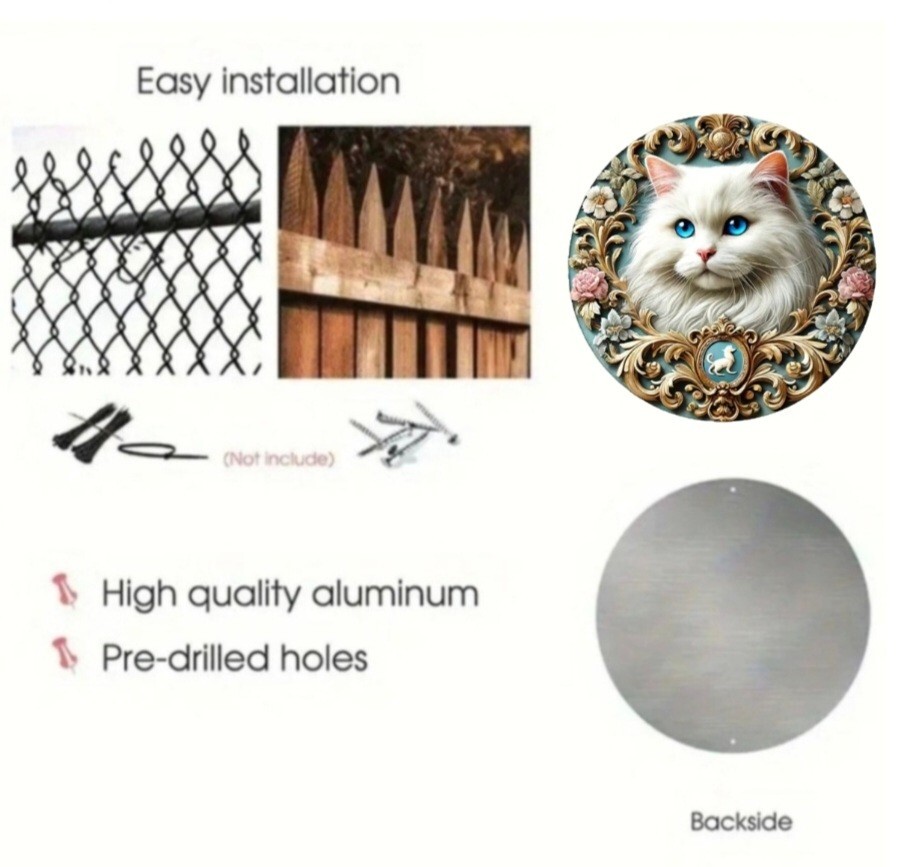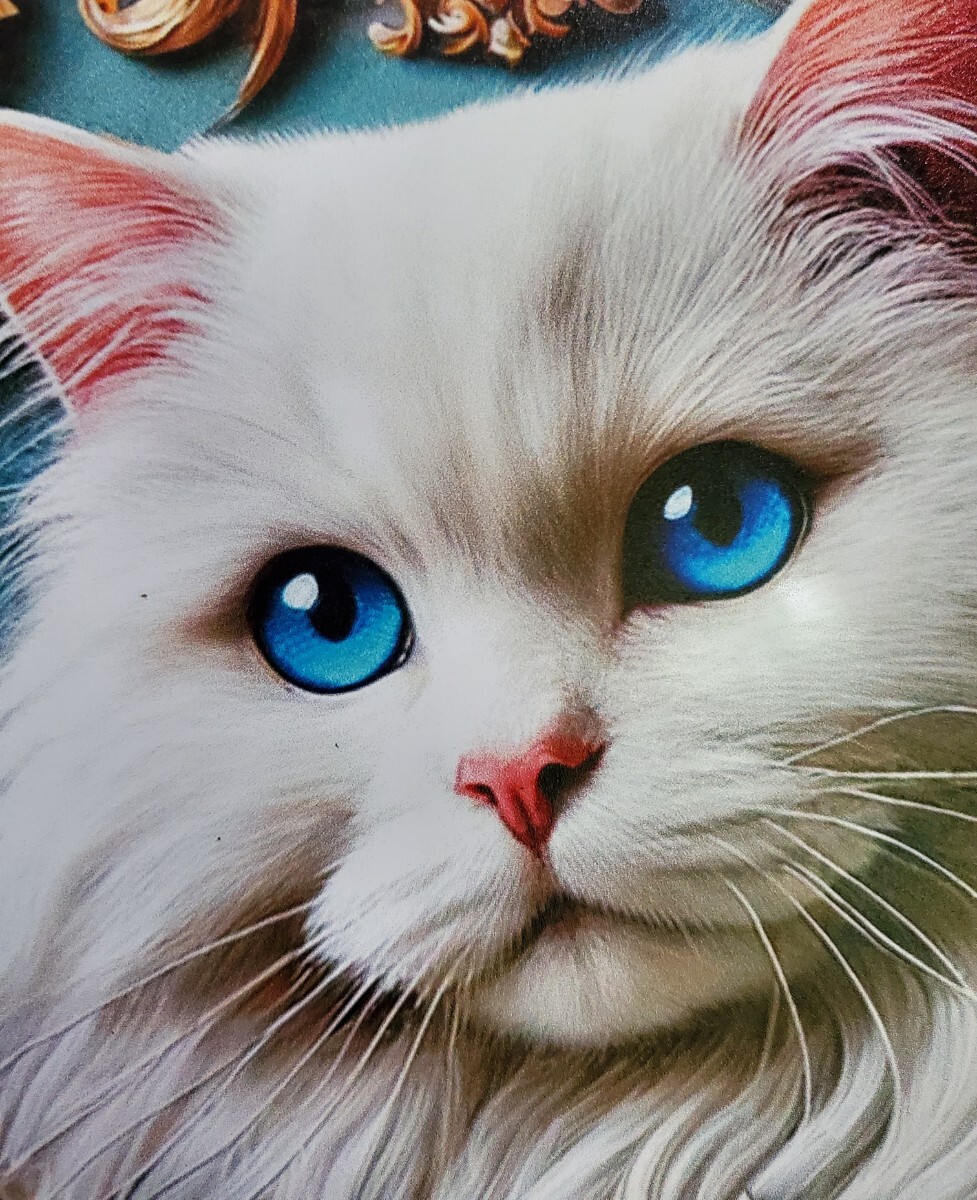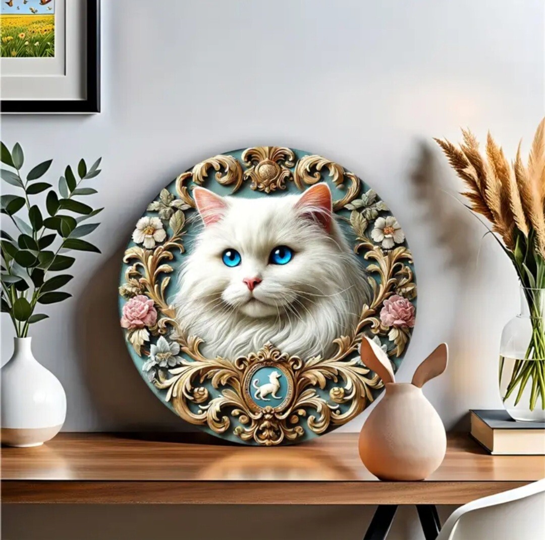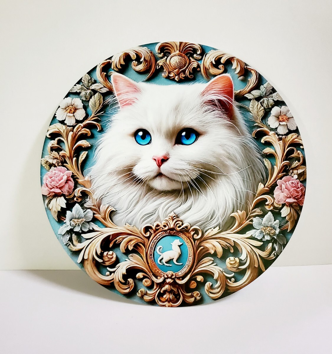 アルミニウムのメタルボードに3Dのプリント技術で描かれた猫のメタルアートです。