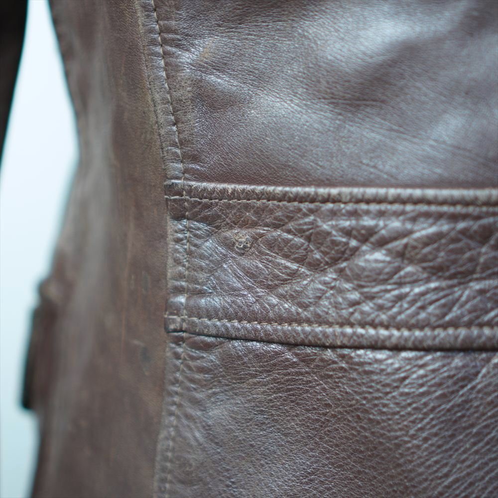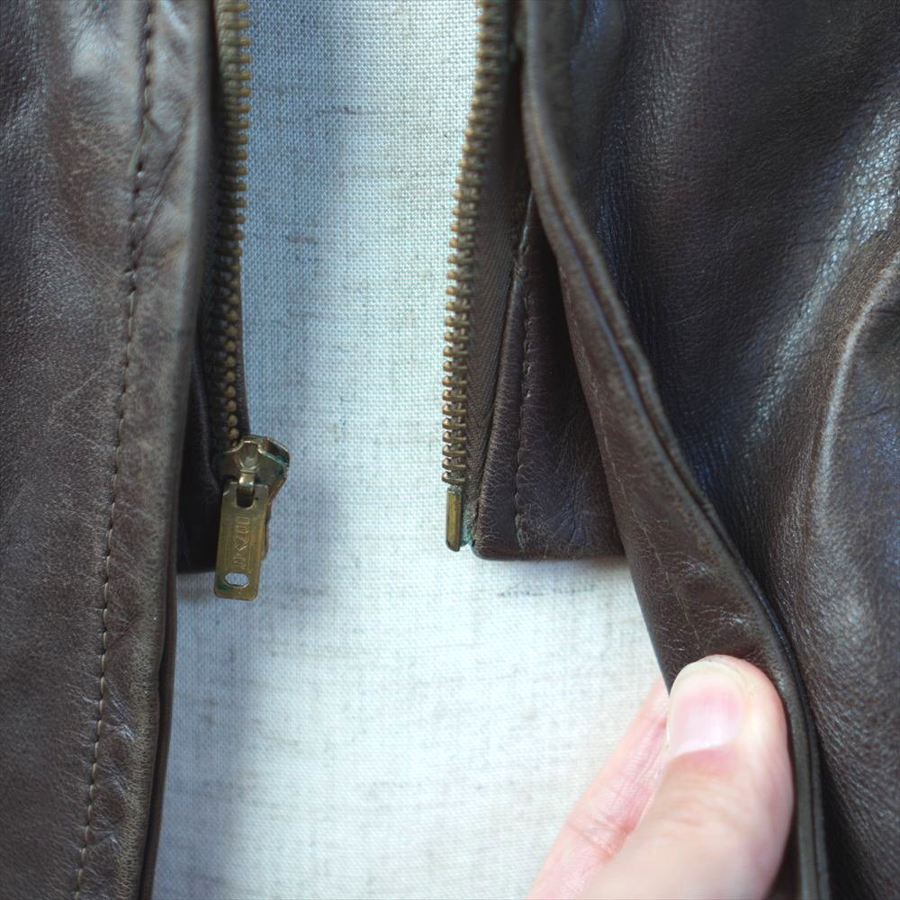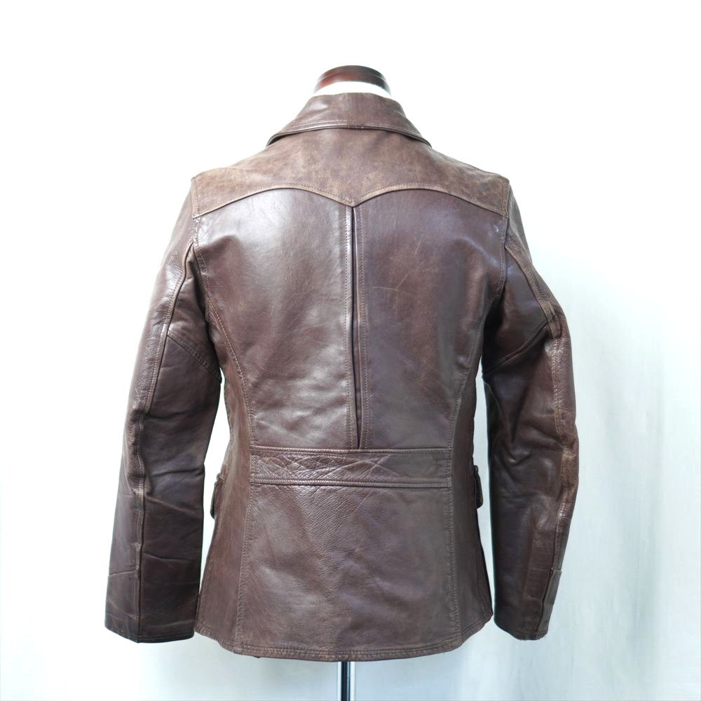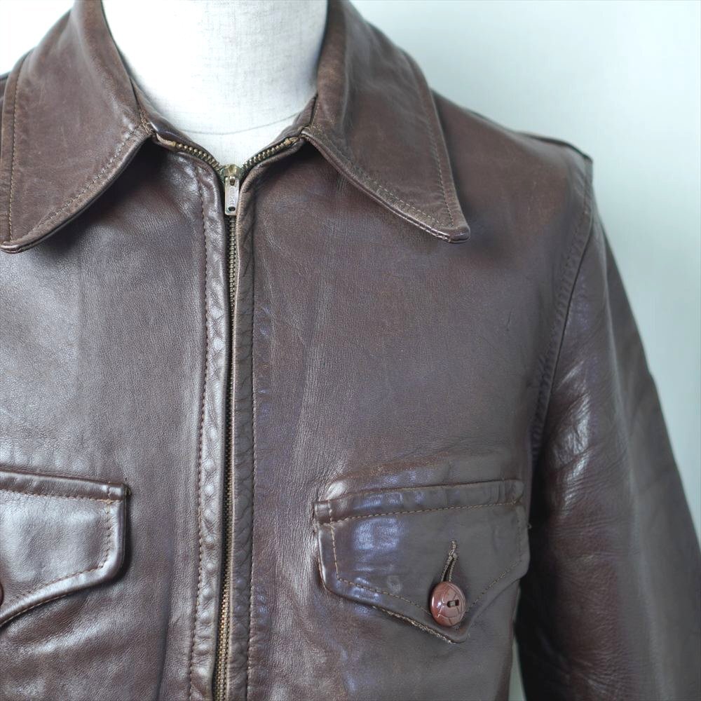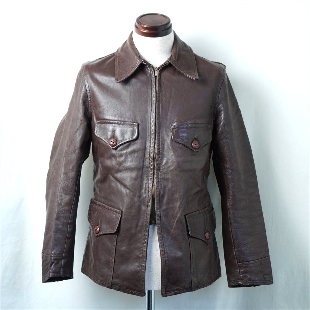 30s40s50s ビンテージ レザー スポーツジャケット ハーフ丈 4ポケ ブラウン 革ジャン