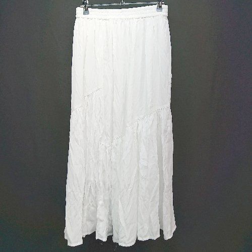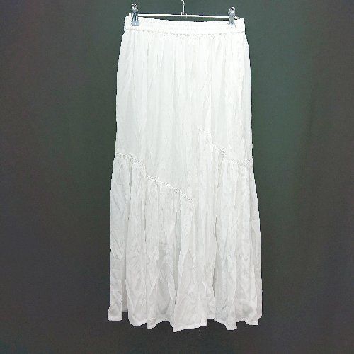 ◇ natural couture ウエストゴム 裏地あり きれいめ ティアード ロング丈 フレア スカート サイズF ホワイト レディース E
