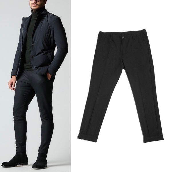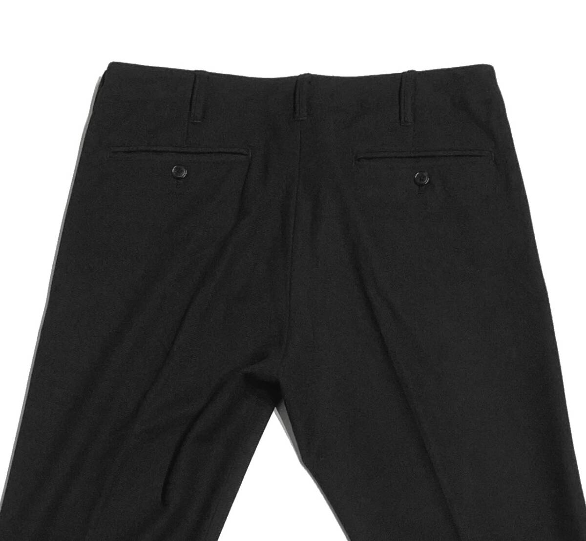 スラックスタイプのパンツはクラシックな佇まいを崩すこと無く実用性を高めた仕様となっています。