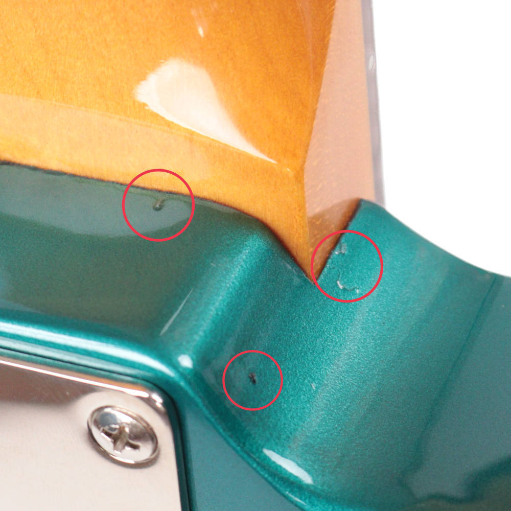 ボディサイド(6弦側くびれ下付近)およびエンドピン周りに小さい傷があります。