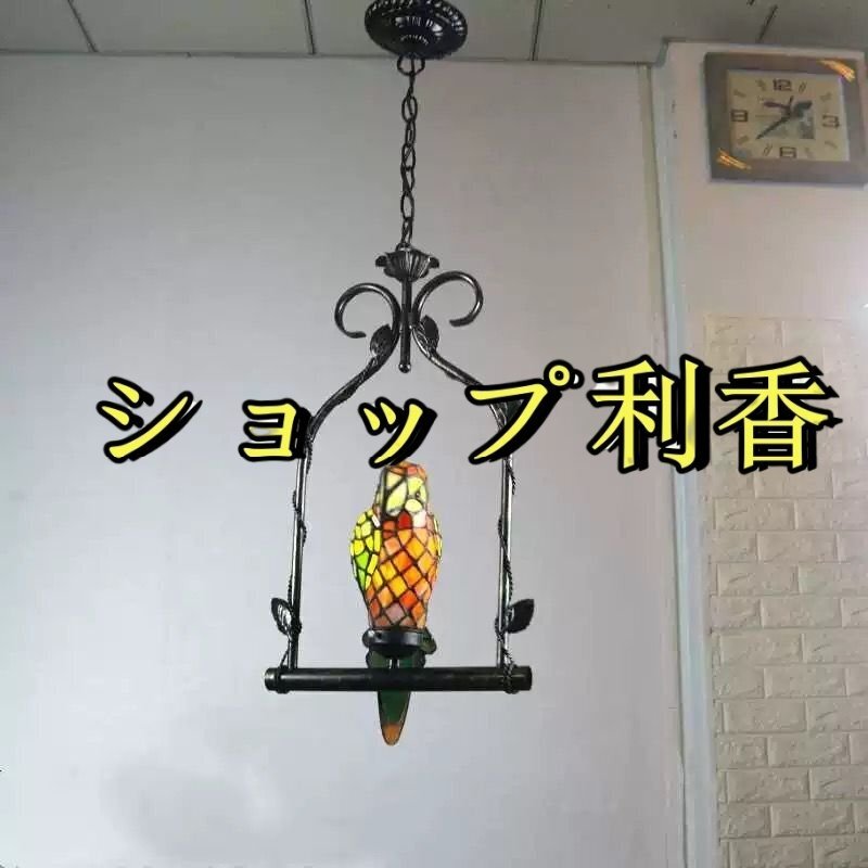 芸術品ステンドランプ ステンドグラス 鸚鵡 ペンダントライト オウム 吊り下げ照明 ティファニー 装飾品 照明