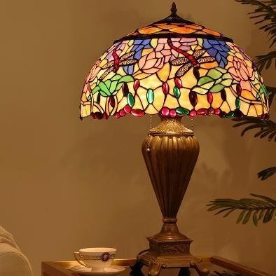 大型ステンドランプ ステンドグラス アンティーク花柄レトロな雰囲気がおしゃれ ティファニー 瑠璃デスクライト照明