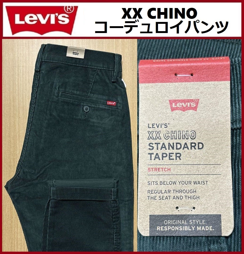 W32 ★ 新品 リーバイス XX CHINO コーデュロイ パンツ テーパー ダークグリーン ストレッチ 保温 防寒 緑 暖パン 85226-0164