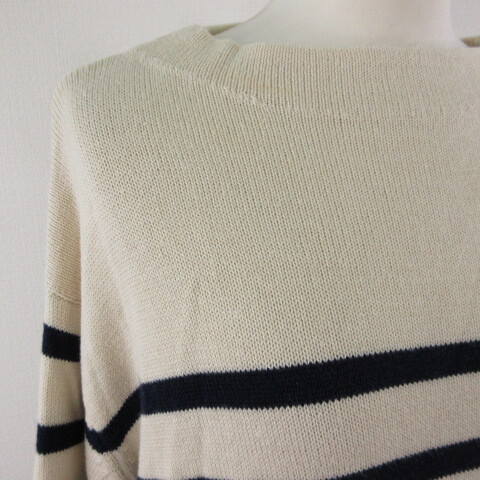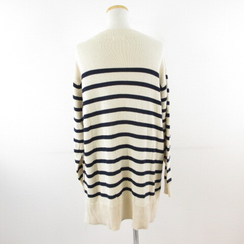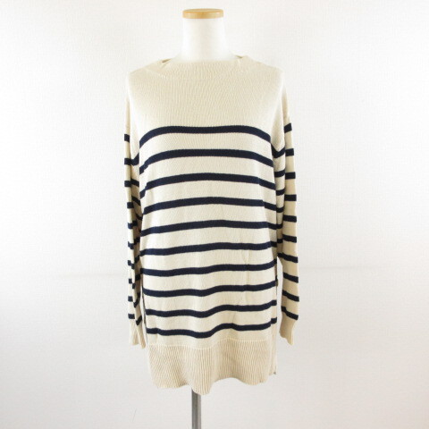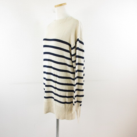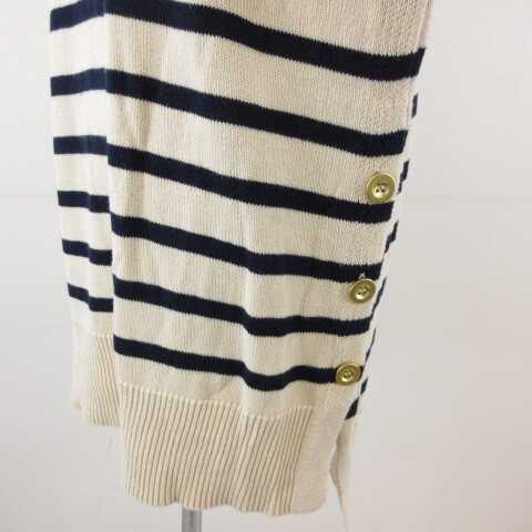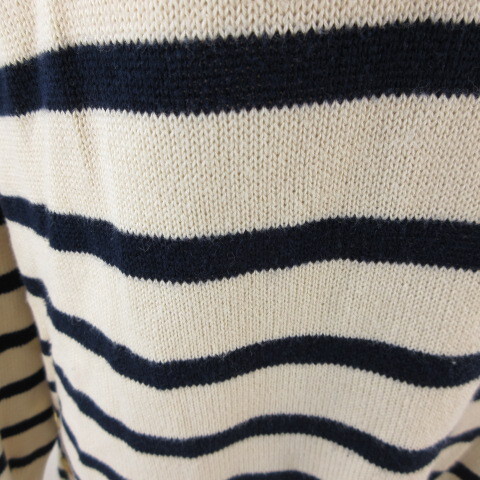 アースミュージック&エコロジー EARTH MUSIC & ECOLOGY サイド釦ニット セーター 長袖 ボーダー アイボリー 紺 F *T770 レディース