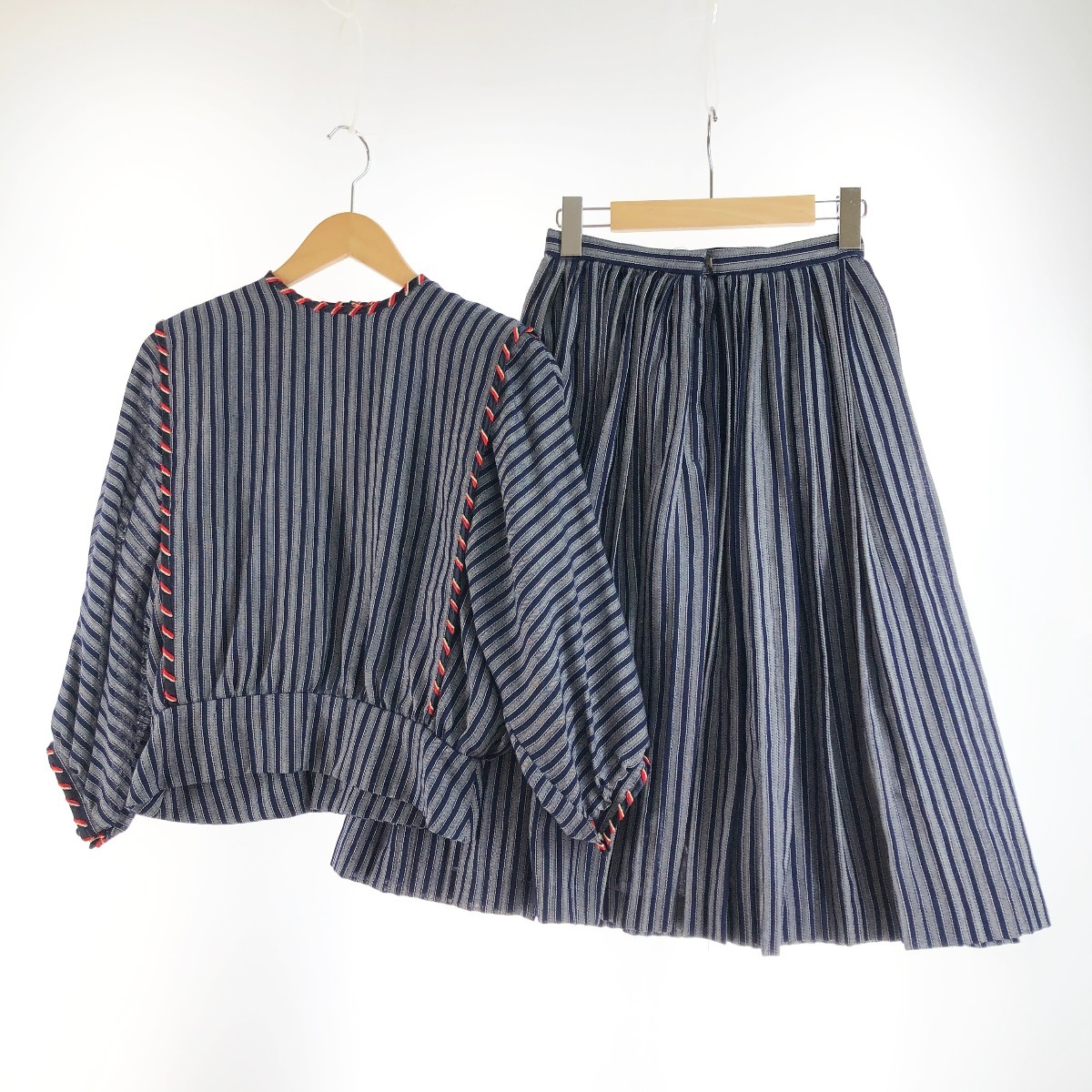 〇〇 ITALIYA イタリヤ レディース 伊太利屋 セットアップ ストライプ サイズ9A2 ネイビー やや傷や汚れあり