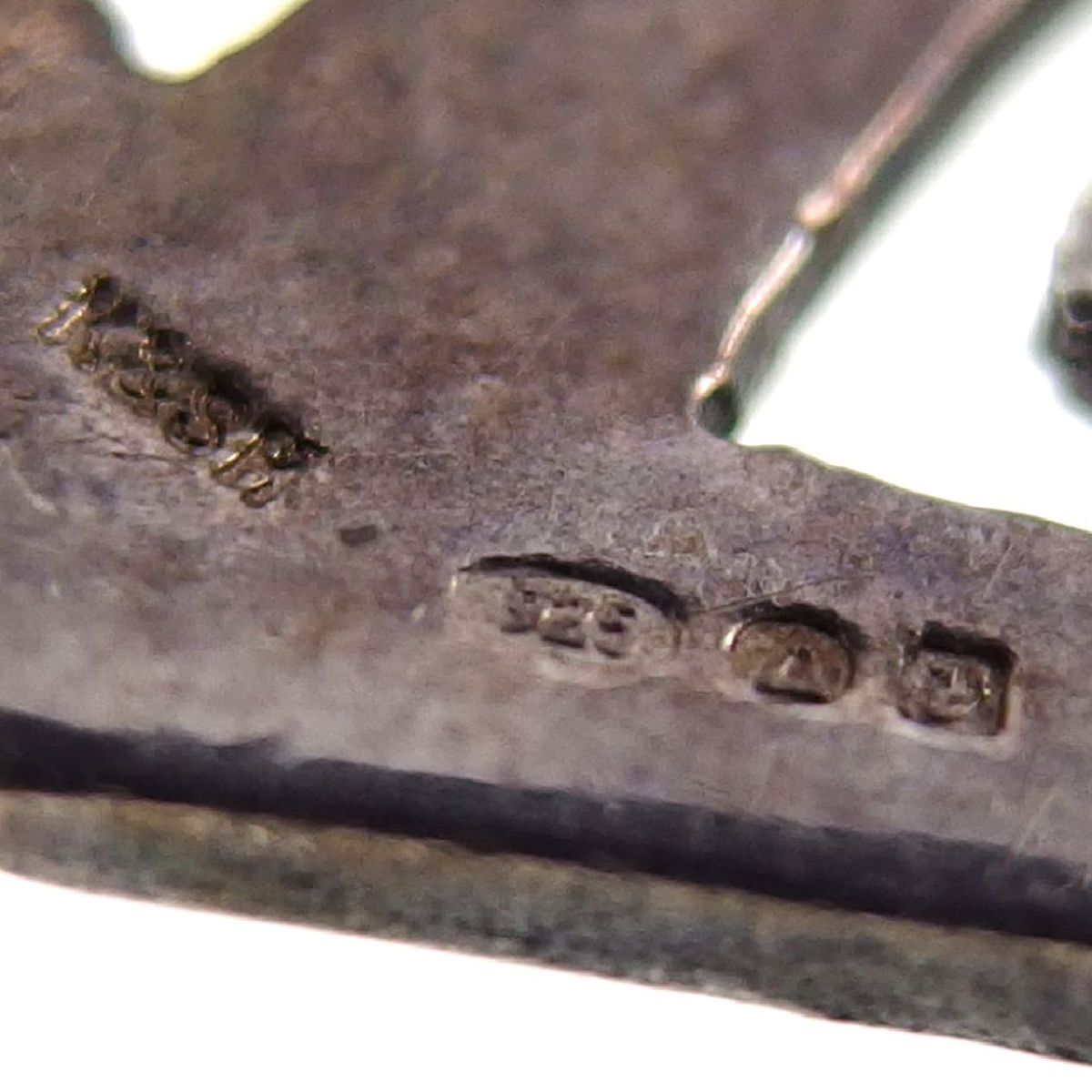裏側に925刻印のほか、英国において製造されたシルバー製品に刻印される、製造地や工房などを示すマークと思われるものが見られます。現物/画像を優先とさせていただきますので、あらかじめ画像で刻印をご確認くださいませ。