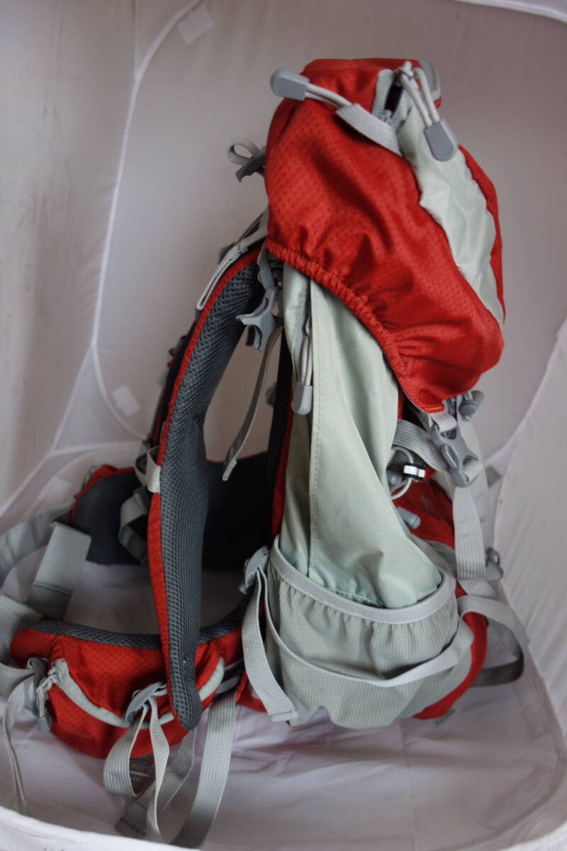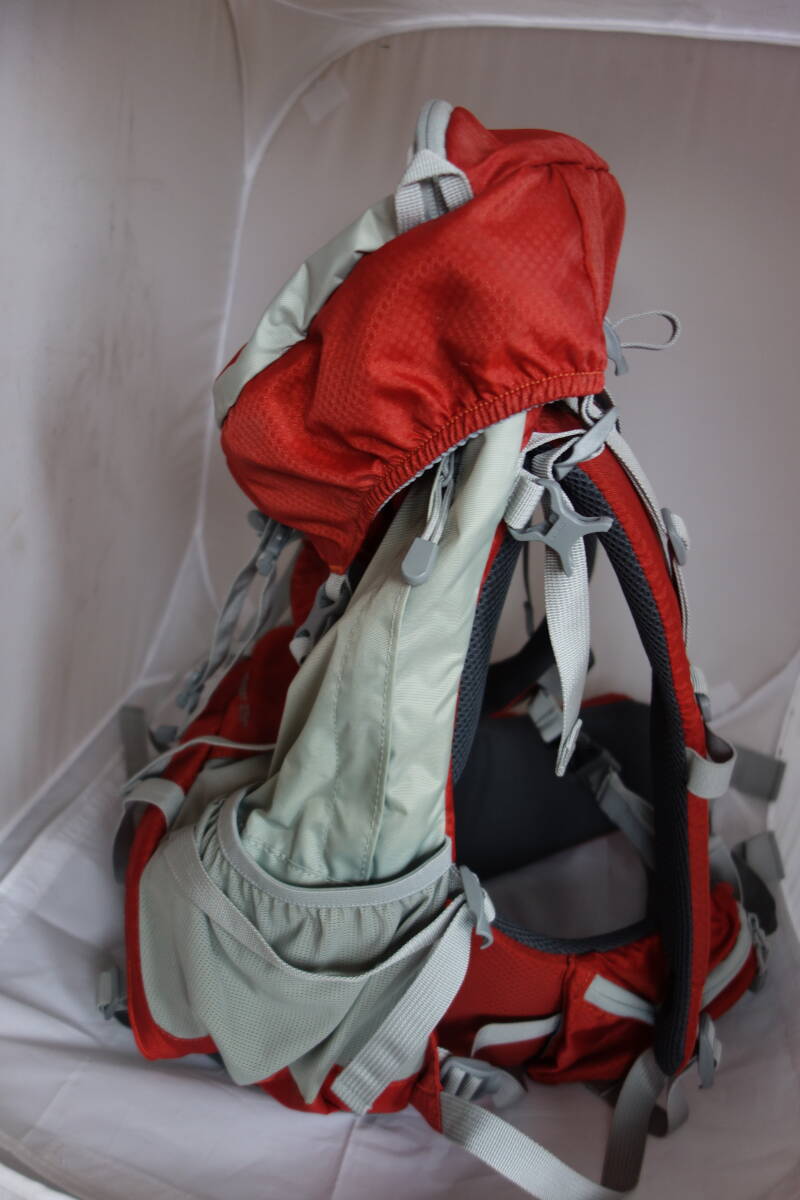 ■とにかく山登りやハイキング等やったことのない私にとっては大きなリュックだなぁと感じますし、腰のあたりは見にコルセットのようになっていてうまくできてるなぁという感じはします。それに軽いです。