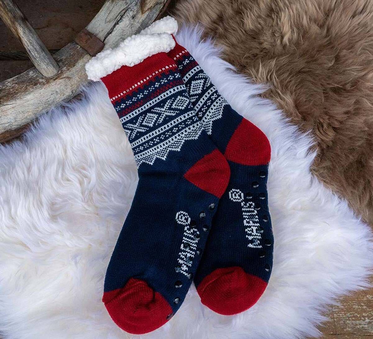 MARIUSパターンのスナグルソックス、フリース裏地付きで暖かく、滑り止め付き。