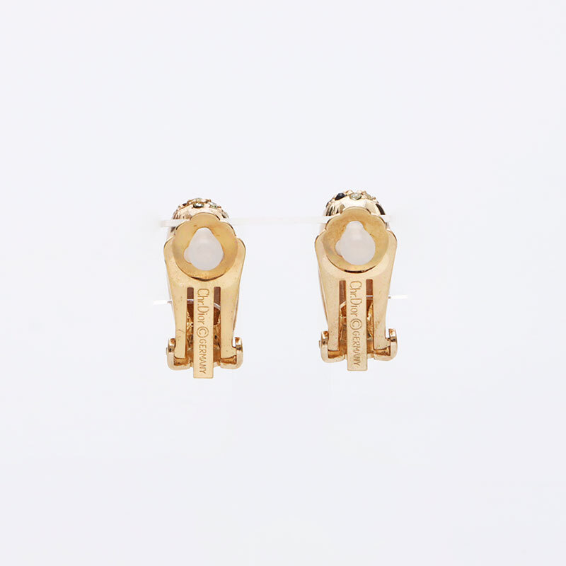 極美品 Christian Dior ラインストーン イヤリング ゴールド