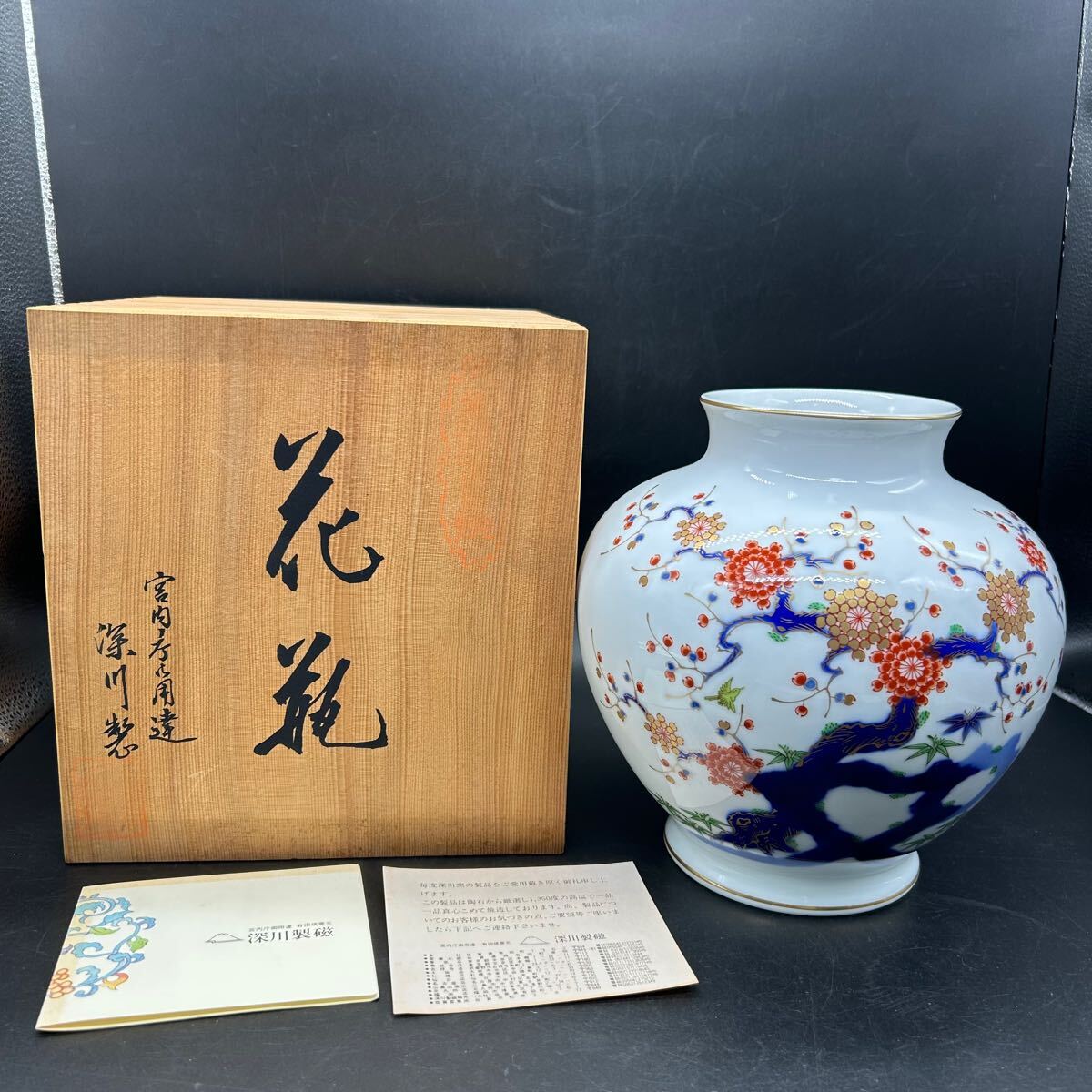 有田焼 宮内庁御用達 深川製磁 岩梅 花文 花瓶 花入 飾壷 花器 ツ17