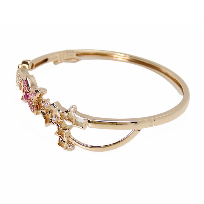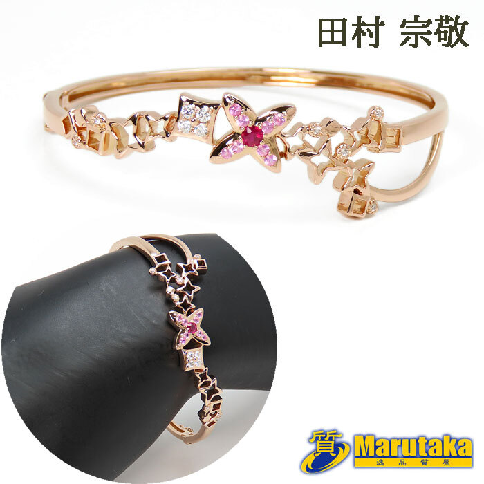 商品名 | 送料無料 田村宗敬 K18 ピンクゴールド バングル 開閉式 鑑別書付 ダイヤモンド ルビー ピンクサファイア 逸品質屋 丸高 24k441-3 |